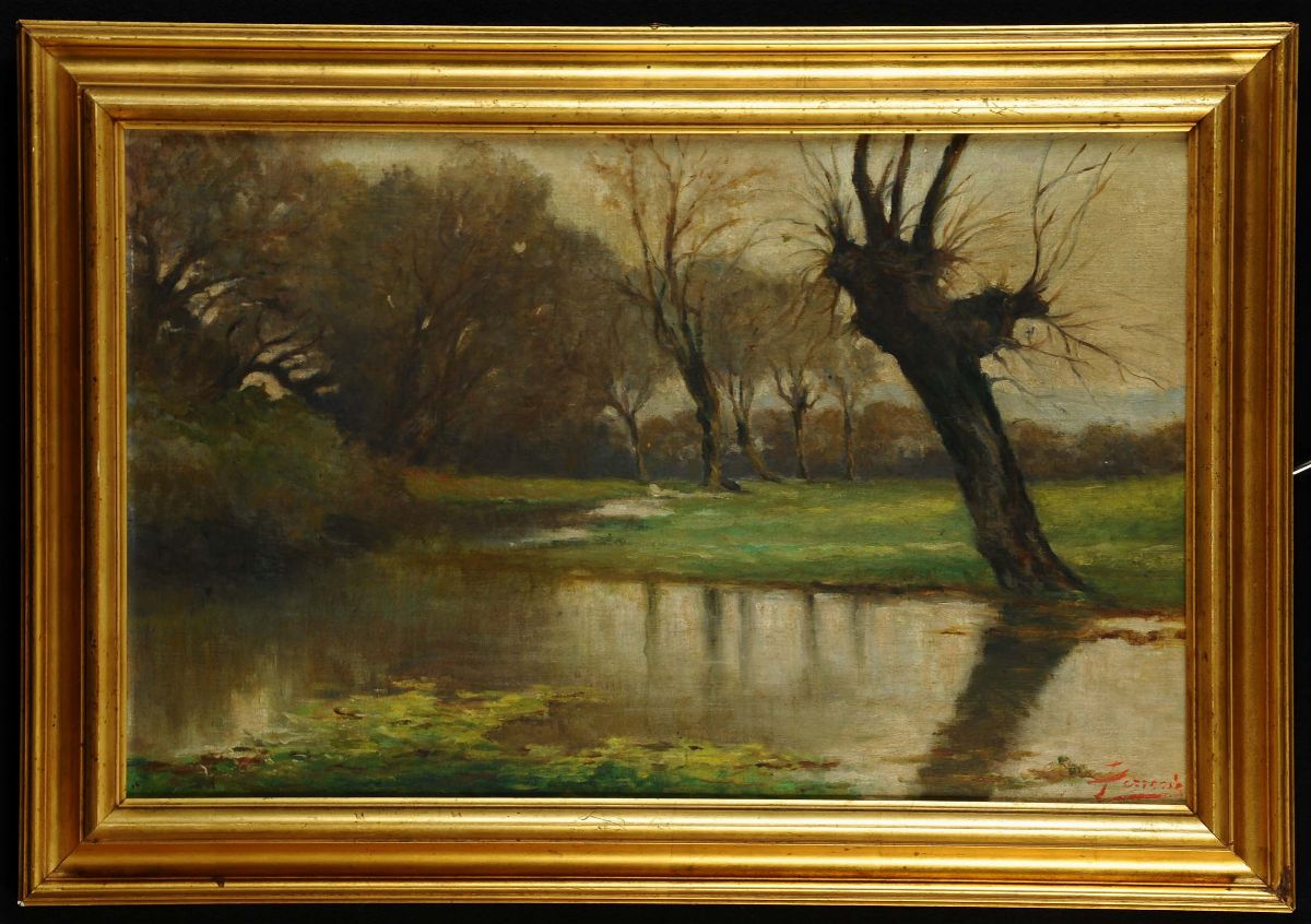 Linda Ferrario (1876-1957) Paesaggio lacustre