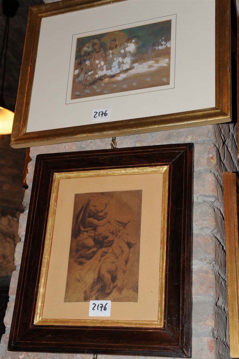 un ritratto maschile sotto vetro, un disegno con putti e un disegno firmato Rossi