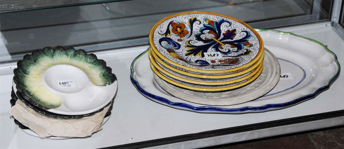 composto da vassoio Cantagalli, piatto Signa, due coppi piatti Deruta e sei piatti Zaccagnini
