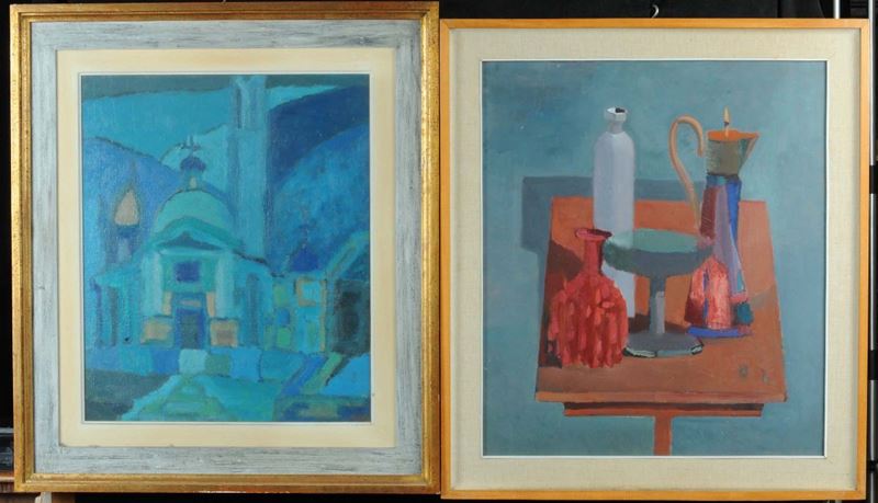 Lotto di quattro grandi dipinti, XX secolo