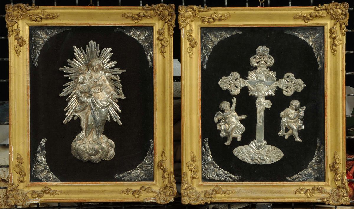 Madonnina e crocifisso in argento sbalzato, Genova XIX secolo