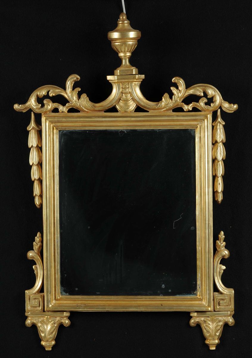 Piccola specchiera in legno intagliato e dorato, XIX secolo