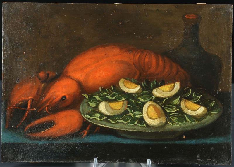 Scuola Austriaca del XIX secolo Natura morta con asticeNatura morta con granchio