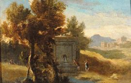 Scuola del XVIII secolo Paesaggio con fontana