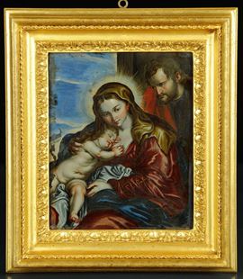 olio su vetro, cm 25x20, in cornice Salvator Rosa in stile