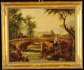 Scuola Francese del XVIII secolo Paesaggio con figure