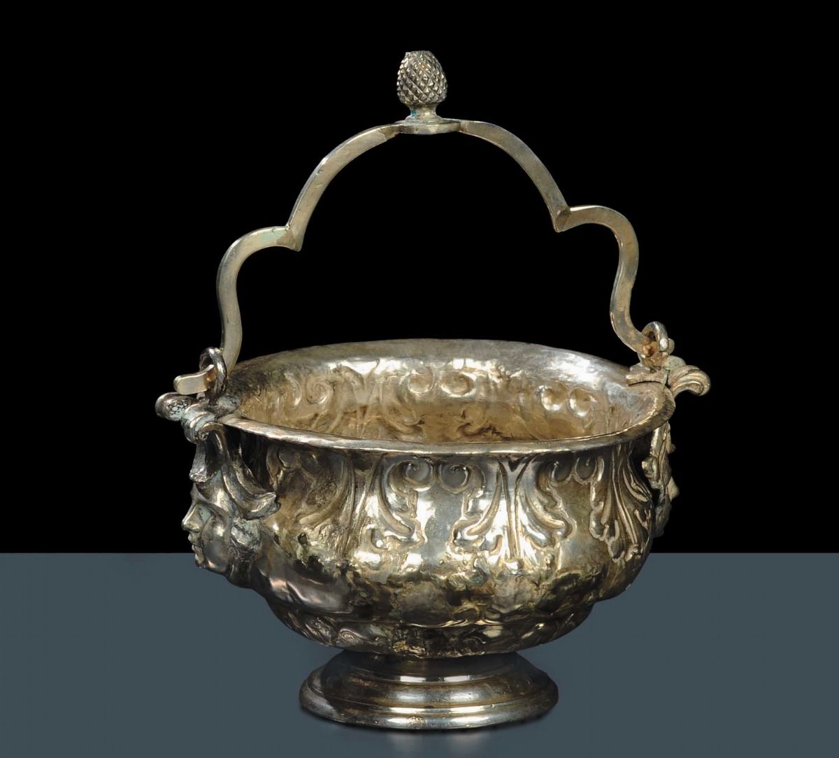 decoro ad elementi vegetali con testine di putto laterali, diametro cm 14, altezza cm 10