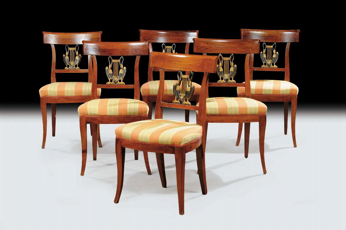 Sei sedie Direttorio in ciliegio, XIX secolo