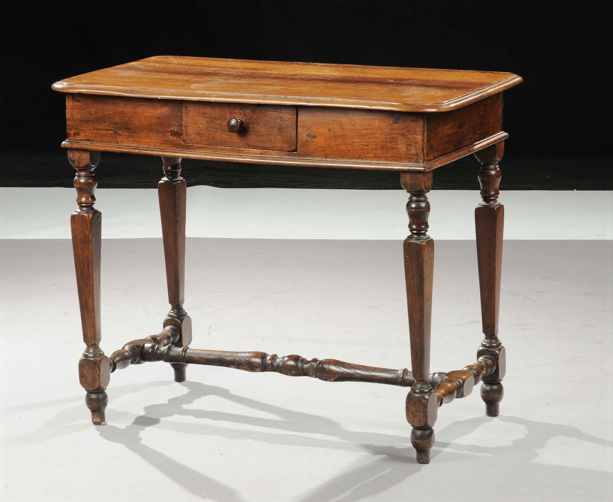 un cassetto sulla fascia, gambe tornite riunite da traversa