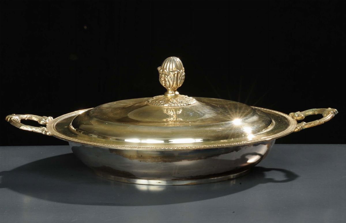 Zuppiera in argento a due manici, gr. 1100