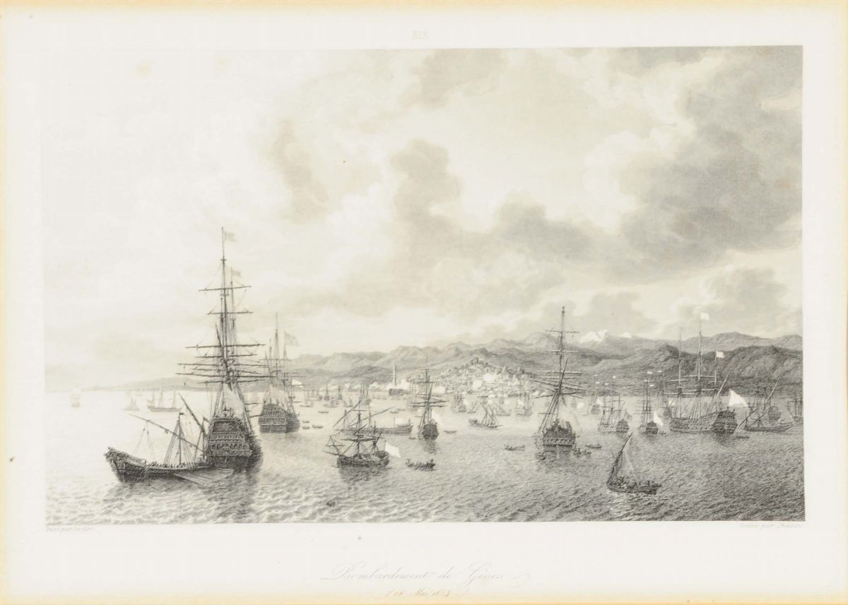 Acquaforte raffigurante il bombardamento di Genova del 1684, XIX secolo