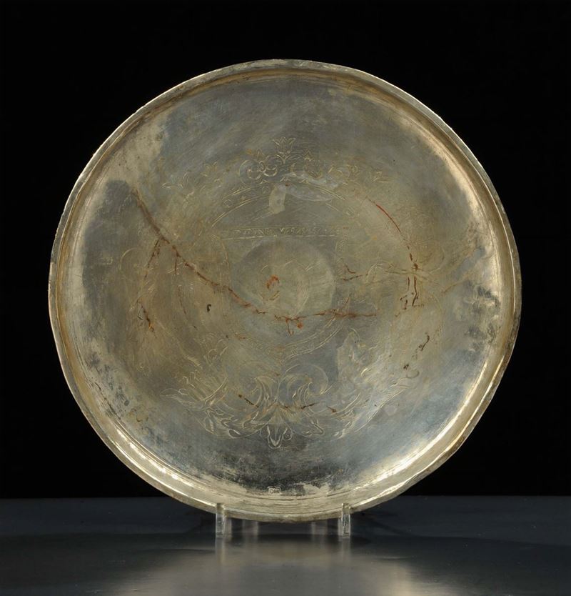 Alzata circolare in argento incisa, Toscana? fine XVII secolo