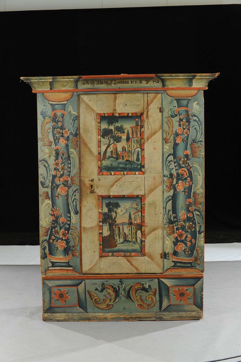 Armadio in legno dipinto, arte tirolese, XIX secolo