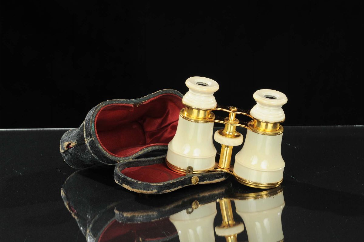 Binocolo da teatro con custodia in pelle, XX secolo