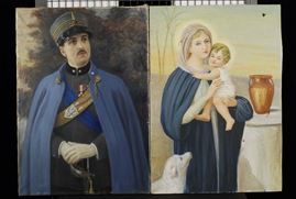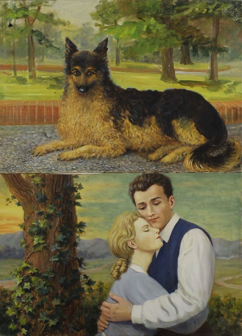 Cinque dipinti ad olio con raffiguraioni diverse
