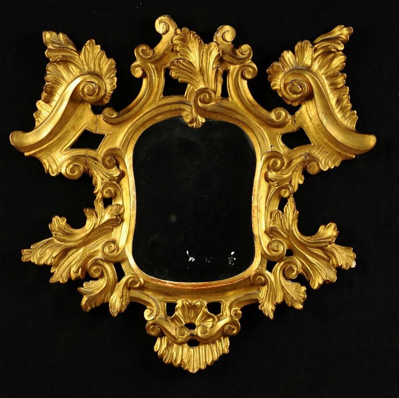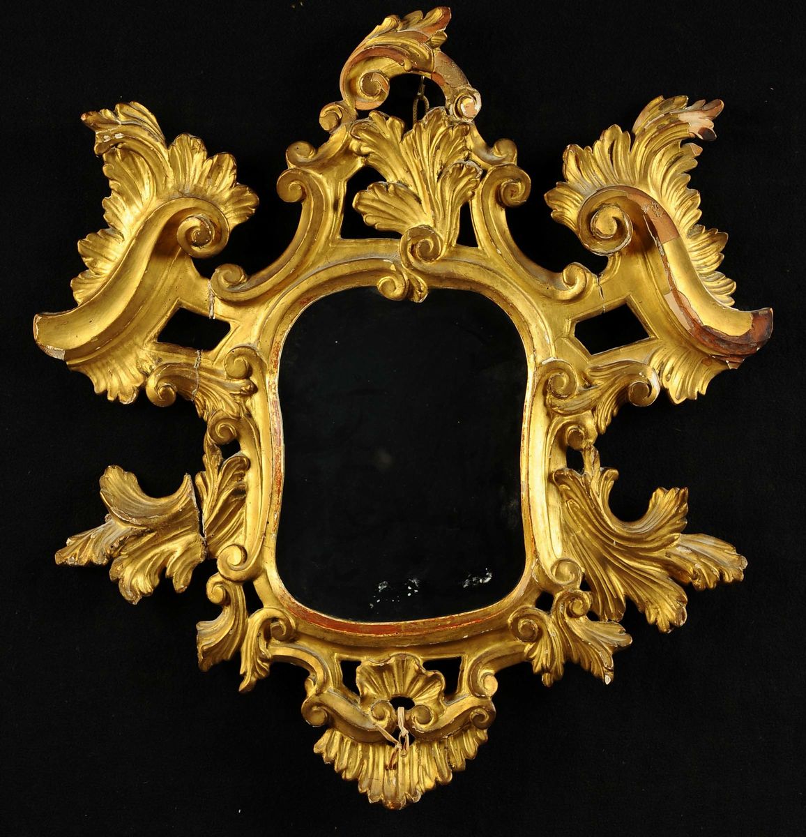 Coppia di specchierine in legno intagliato e dorato, XVIII-XIX secolo