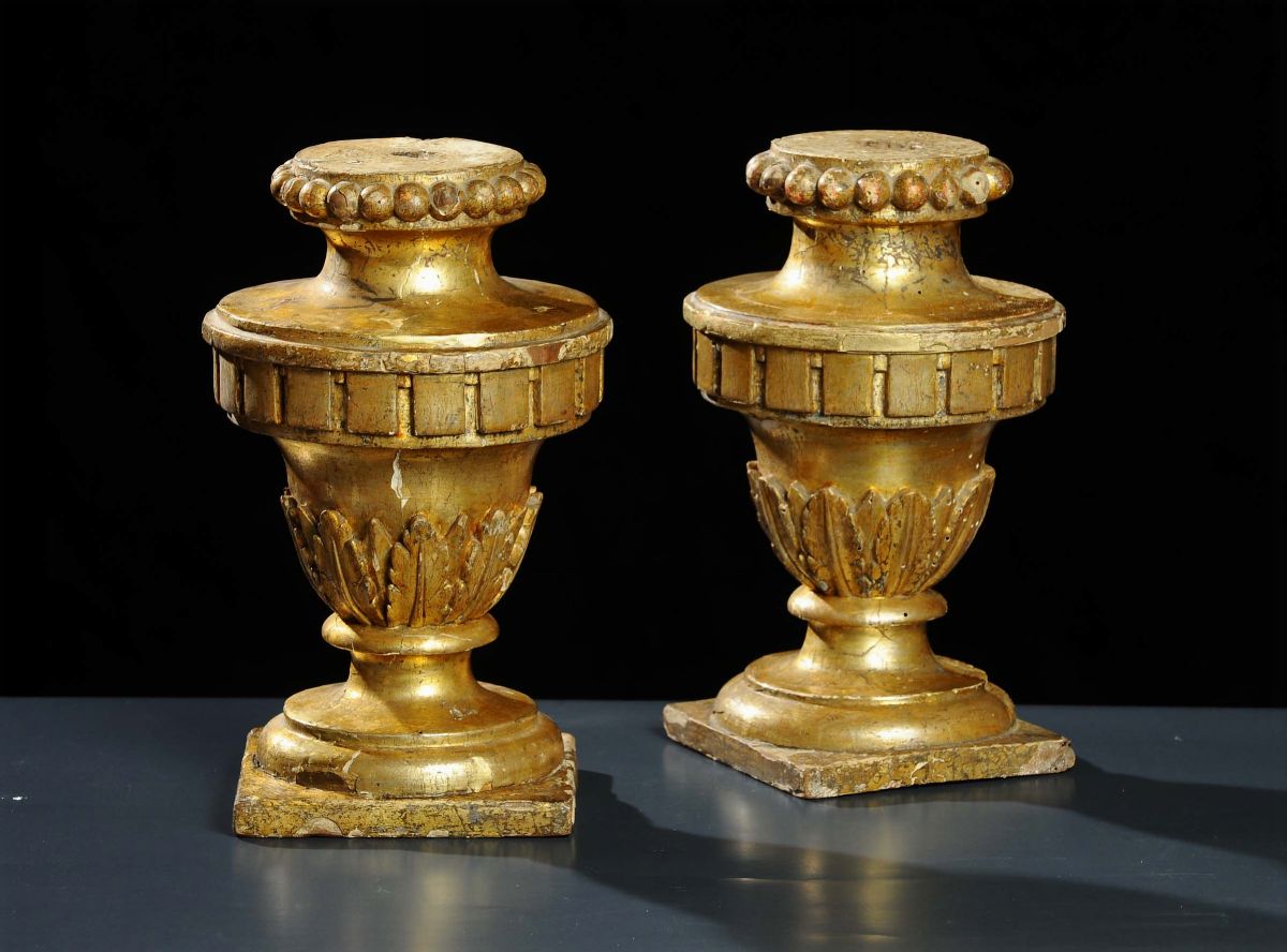 Coppia di vasi portapalme in legno intaglaito e dorato a mecca, XIX secolo