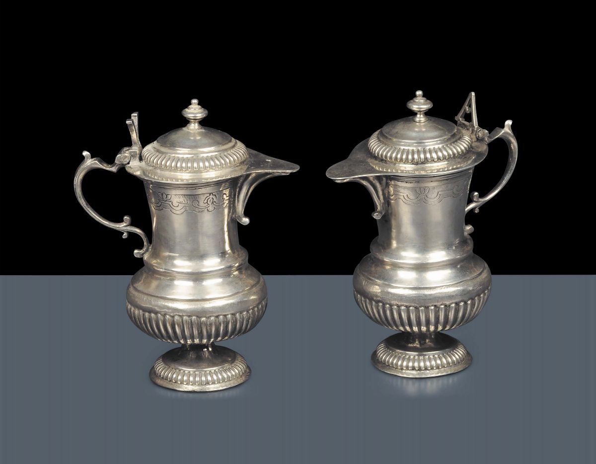 Coppia di versatoi per lÕeucarestia in argento fuso, sbalzato e cesellato, Manifattura italiana (Lombardia?) XVIII secolo [..]