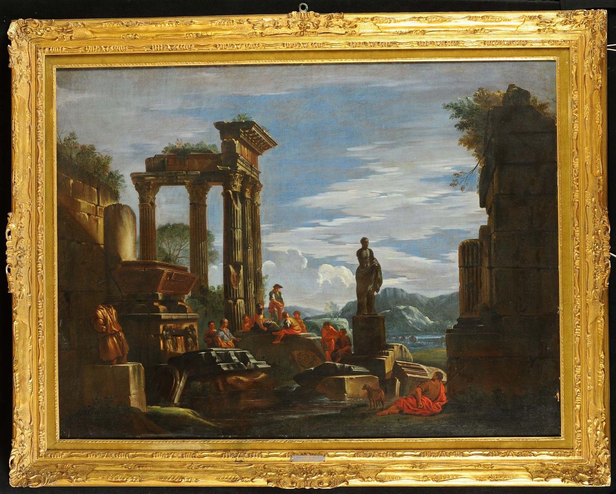 Expertise di Ferdinando Bologna, che la definisce una tipica opera autografa di Ghisolfi, come lo dimostra il riscontro con altre sue opere note della Galleria di Dresda e della Galleria Nazionale di Roma. L'opera si colloca nel momento della piena maturitˆ del maestro e, con la sua vibrante qualitˆ di pittura, ribadisce quanto sia di notevole il debito di Giovan Paolo Panini nei confronti di Ghisolfi.