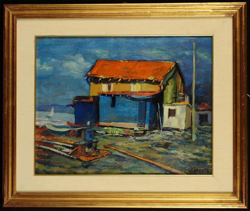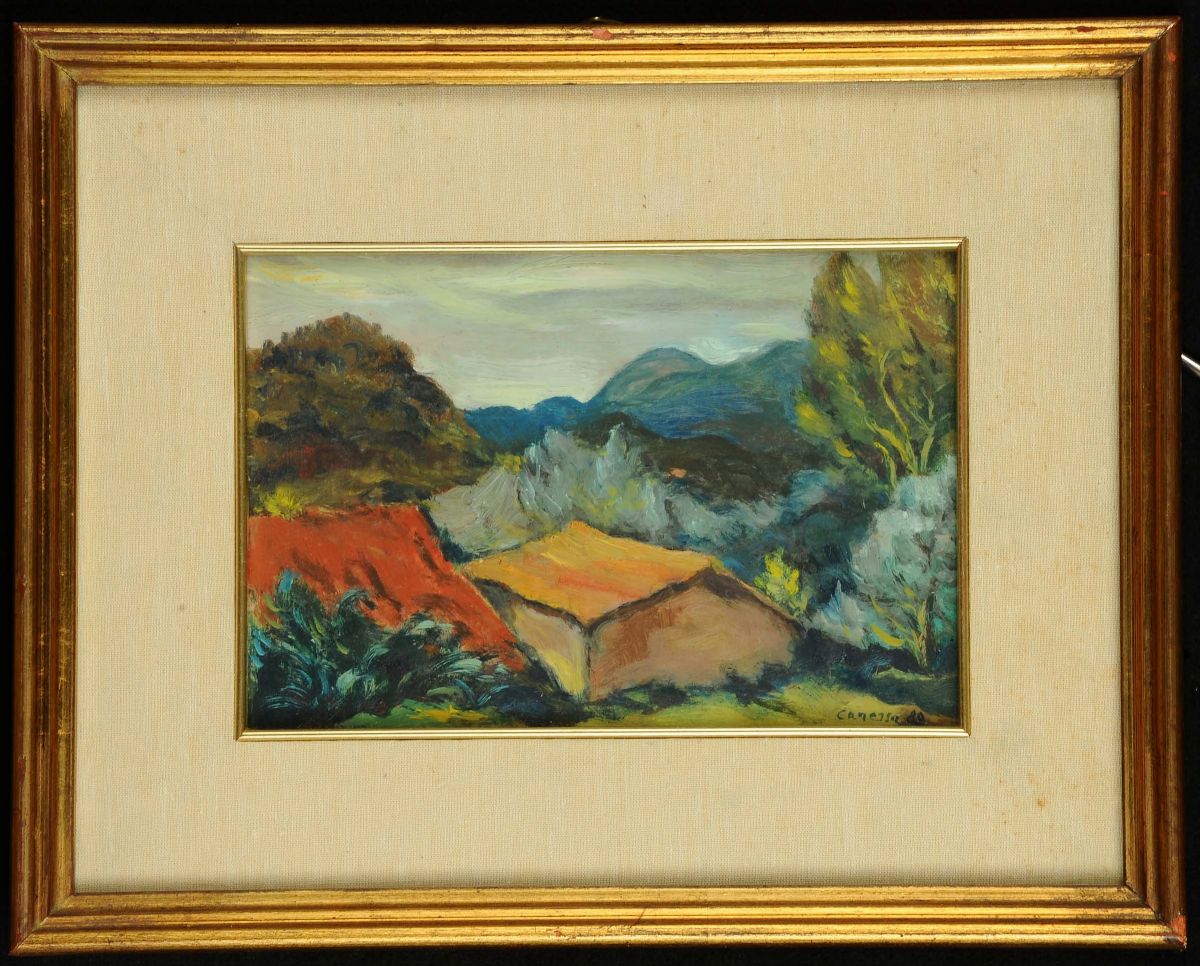 lotto di tre dipinti ad olio su masonite, misure differenti
