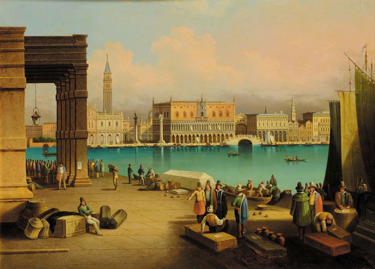 Scuola del Nord Europa del XIX secolo Veduta del Canal Grande da Punta della Dogana