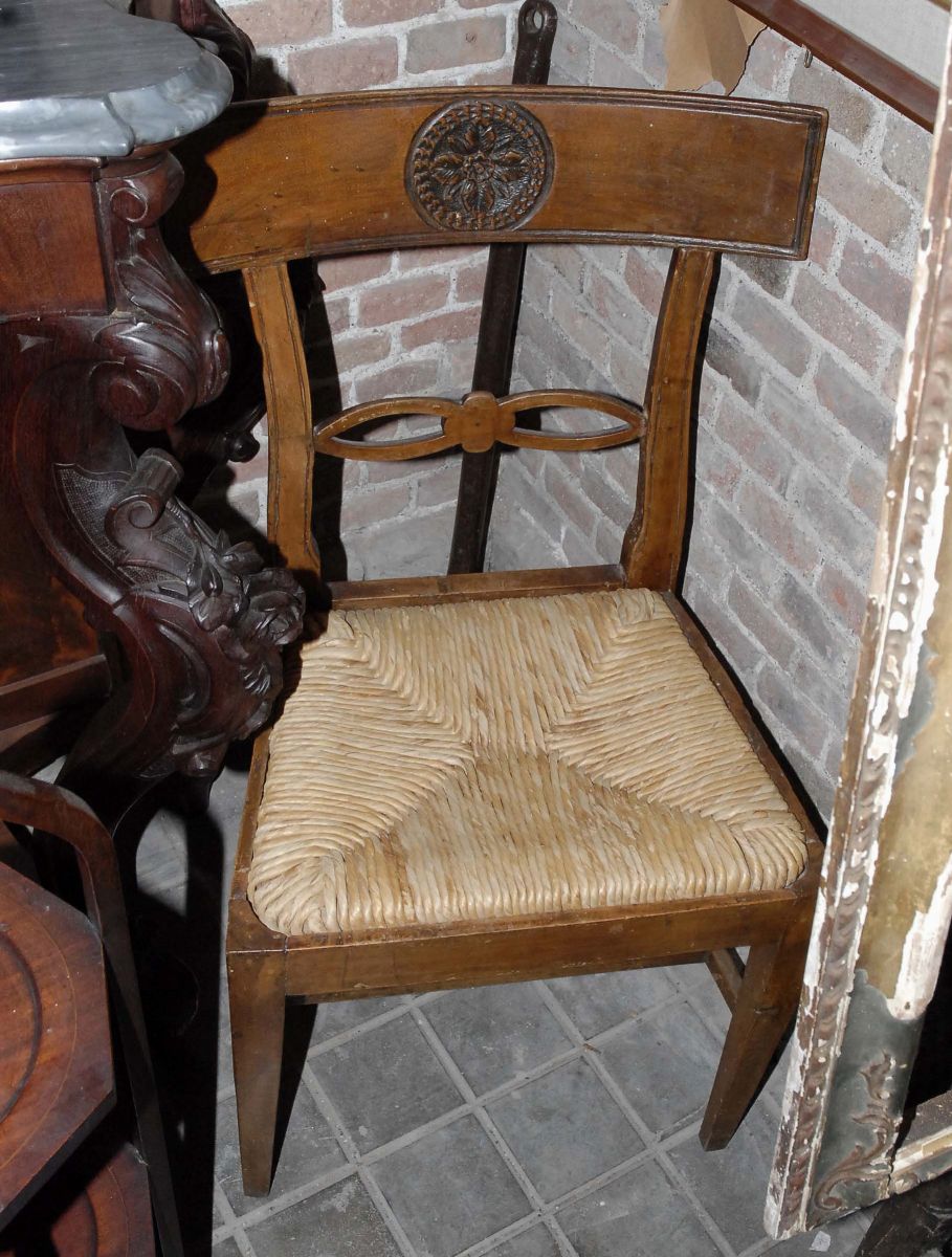 Sedia in noce con ricamo in paglia, XIX secolo