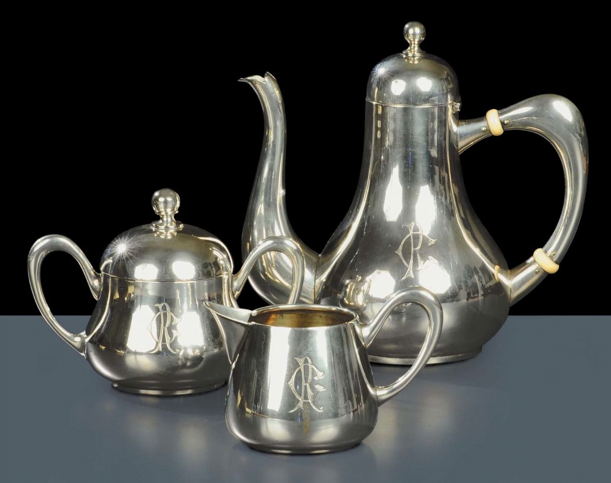 composto da teiera, lattiera e zuccheriera con monogramma R.C.