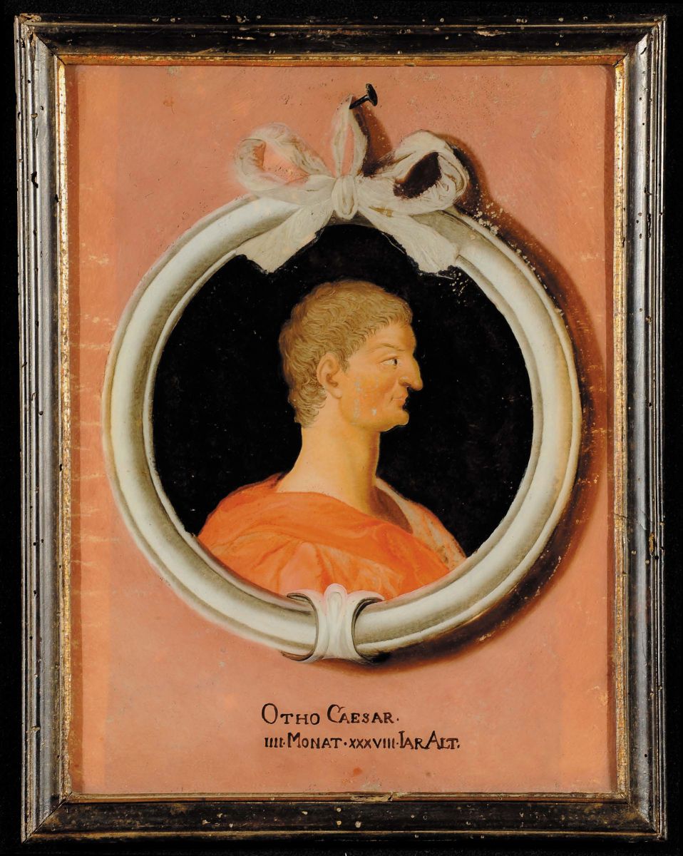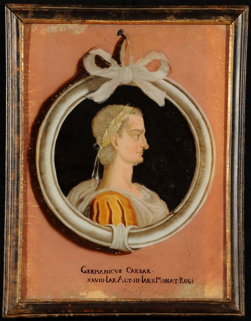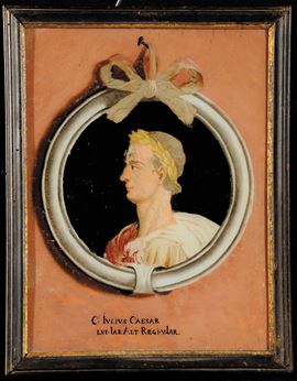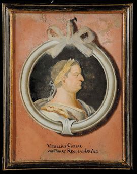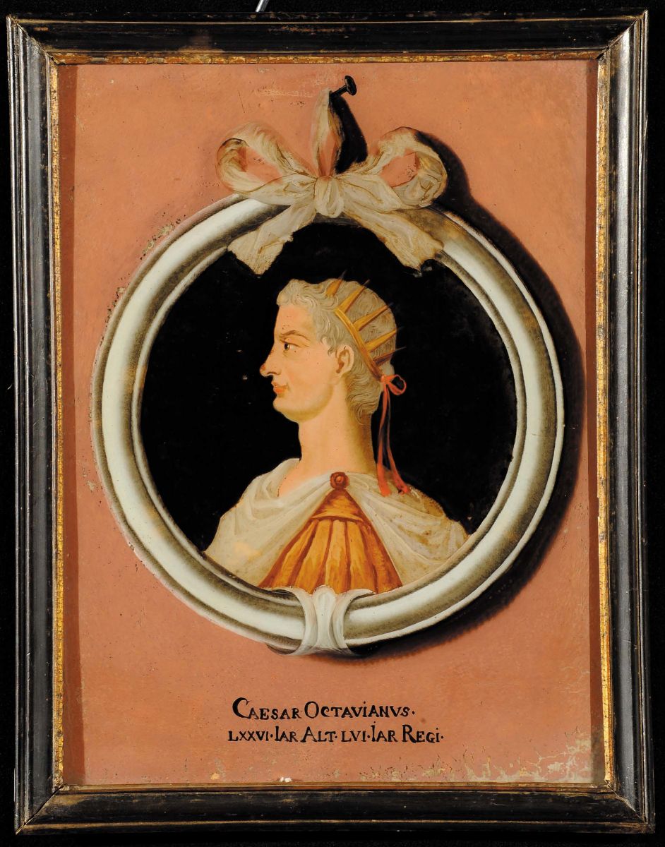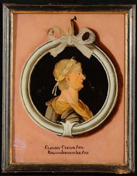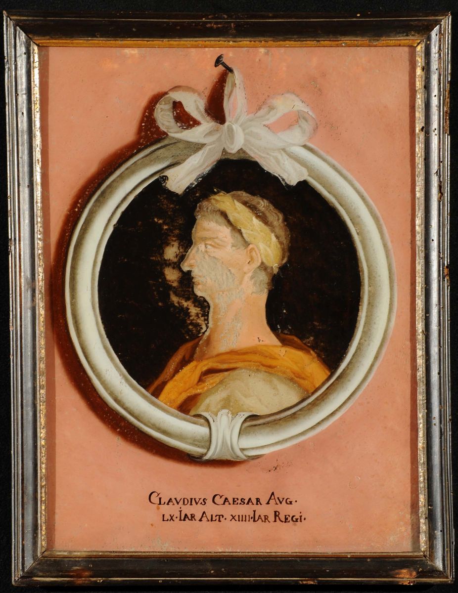 Sette dipinti su vetro raffiguranti imperatori romani, XVIII secolo