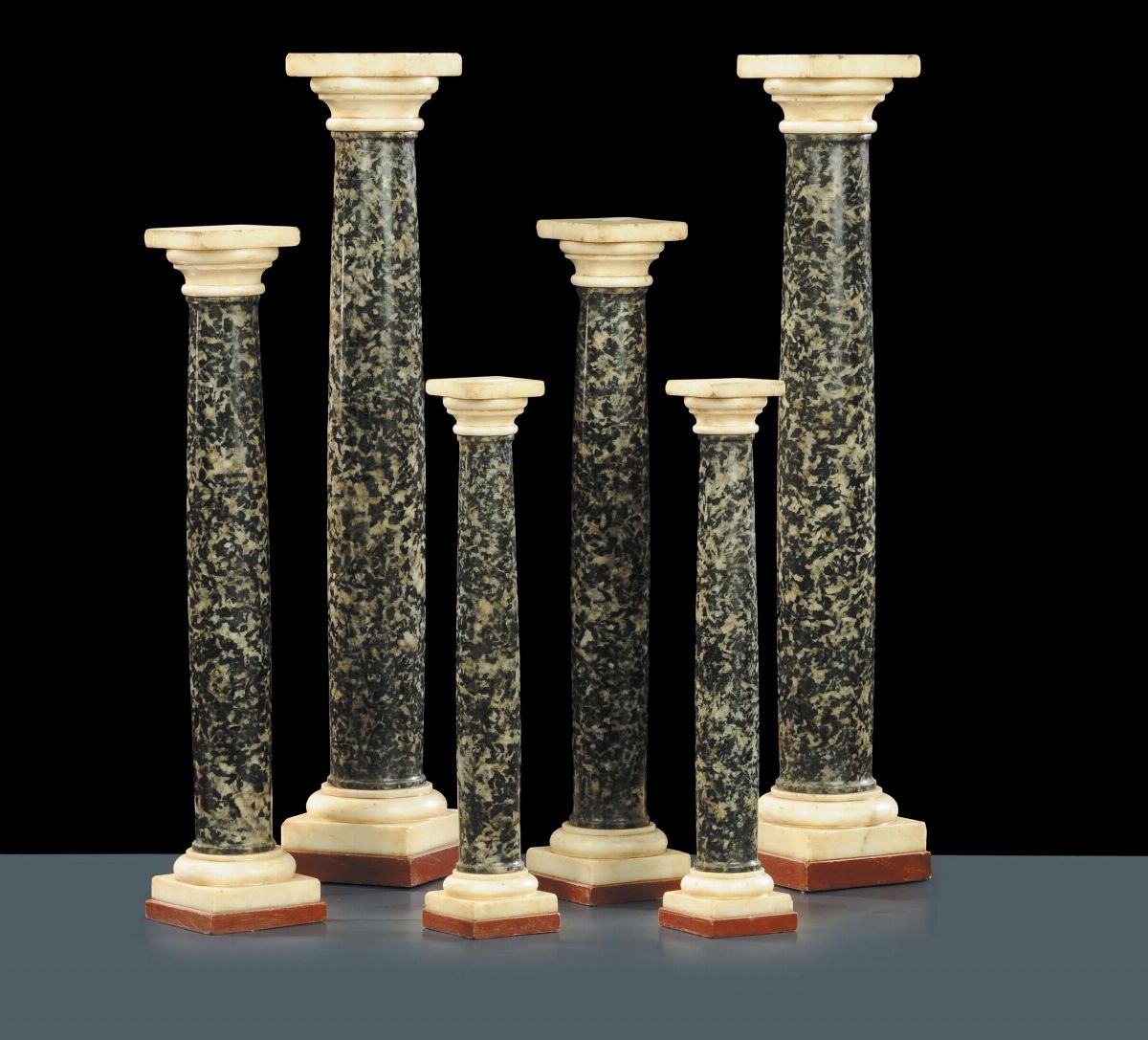Tre coppie di colonnine in granito con capitelli e basi in marmo bianco