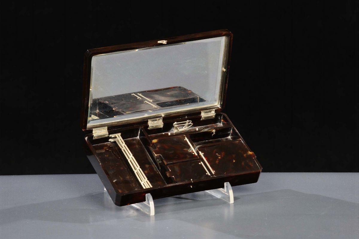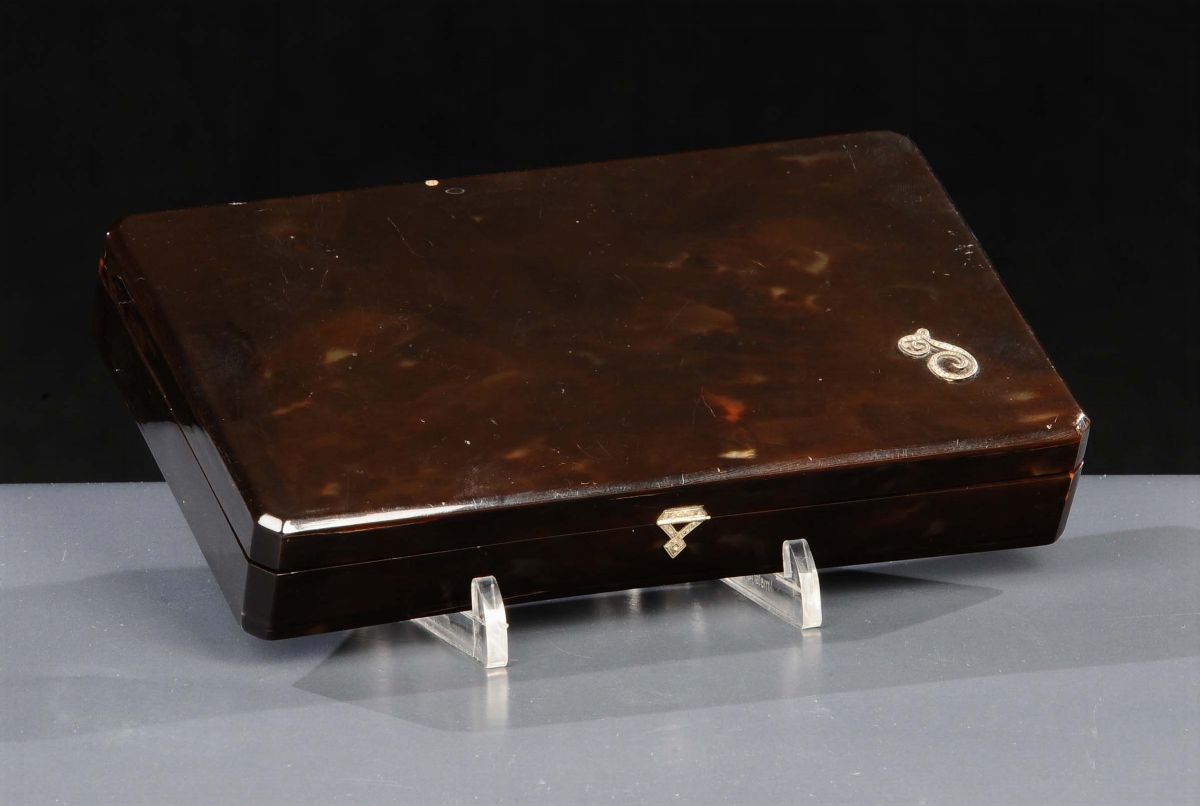 Trousse in tartaruga con iniziali e chiusura in rose di diamanti, Francia 1920