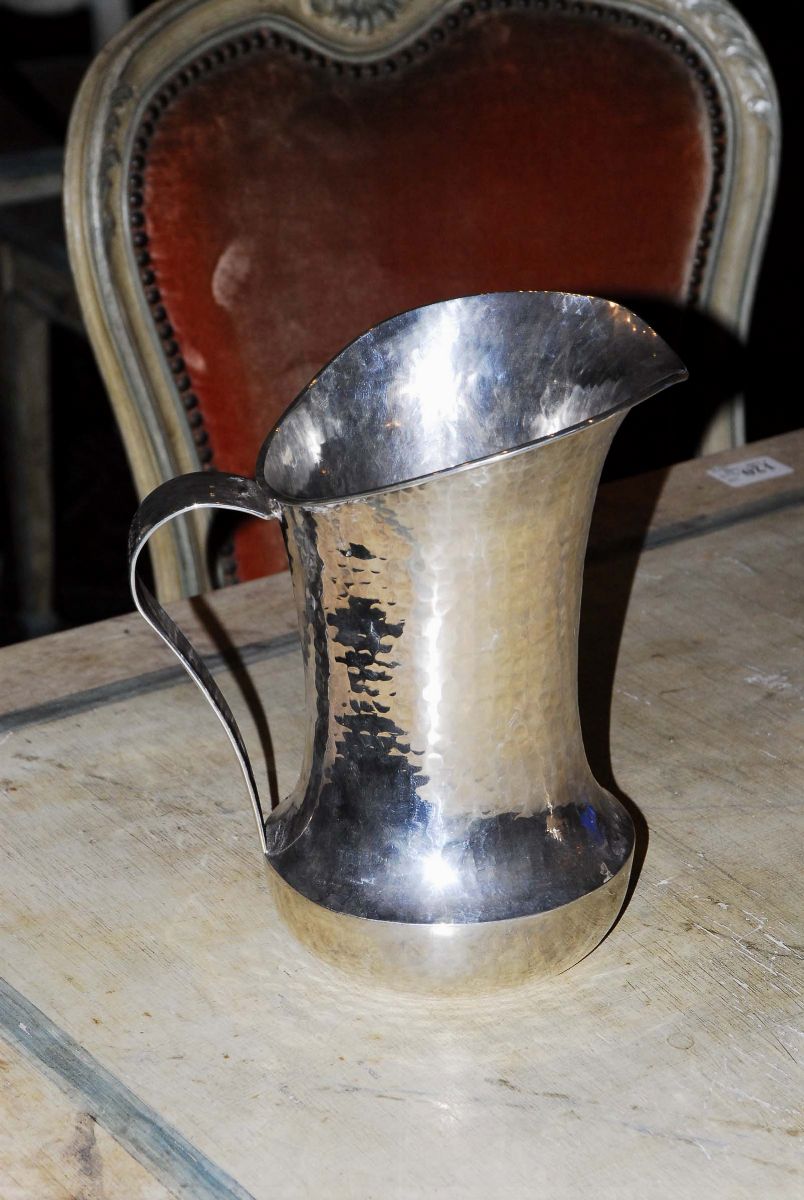 Versatoio in argento martellato con punzoni americani, gr. 920