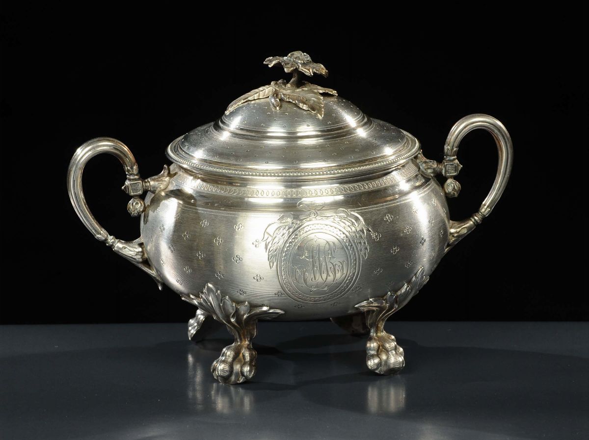coperchio con presa a fiore, monogramma inciso sul corpo, altezza cm 14