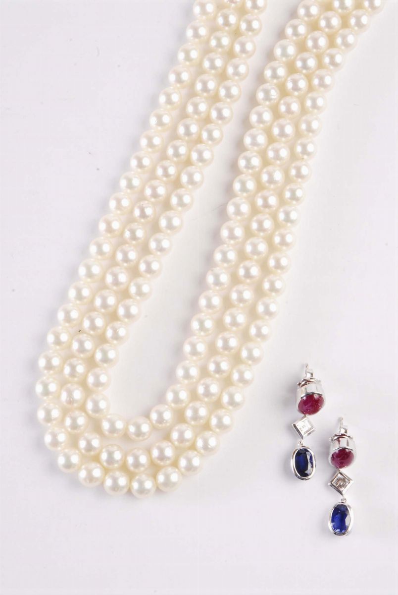 con rubini, zaffiri e diamanti per ct 0,65. Oro 18Kt