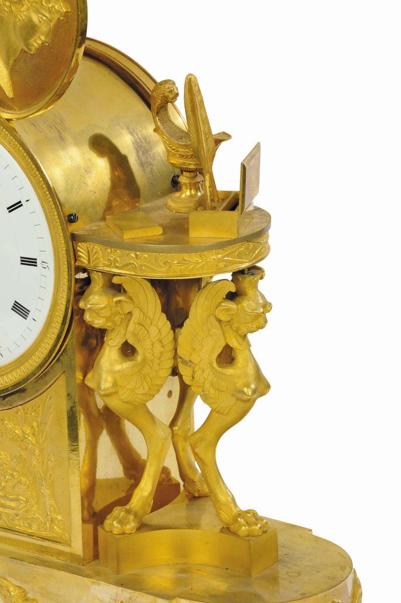 Orologio Impero in bronzo dorato lettera d'amore, Francia XIX secolo