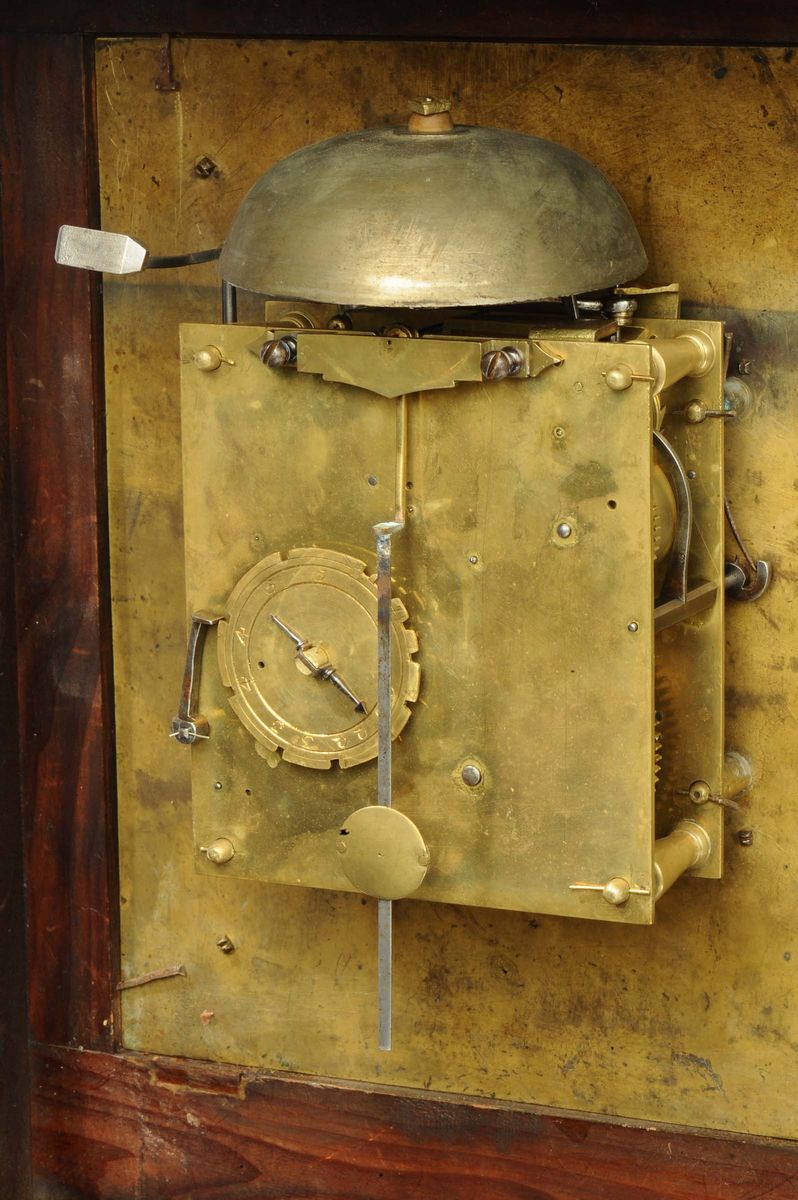 Orologio romano con cassa in legno lastronato in palissandro e ricchi fregi dorati, metà del XVIII secolo