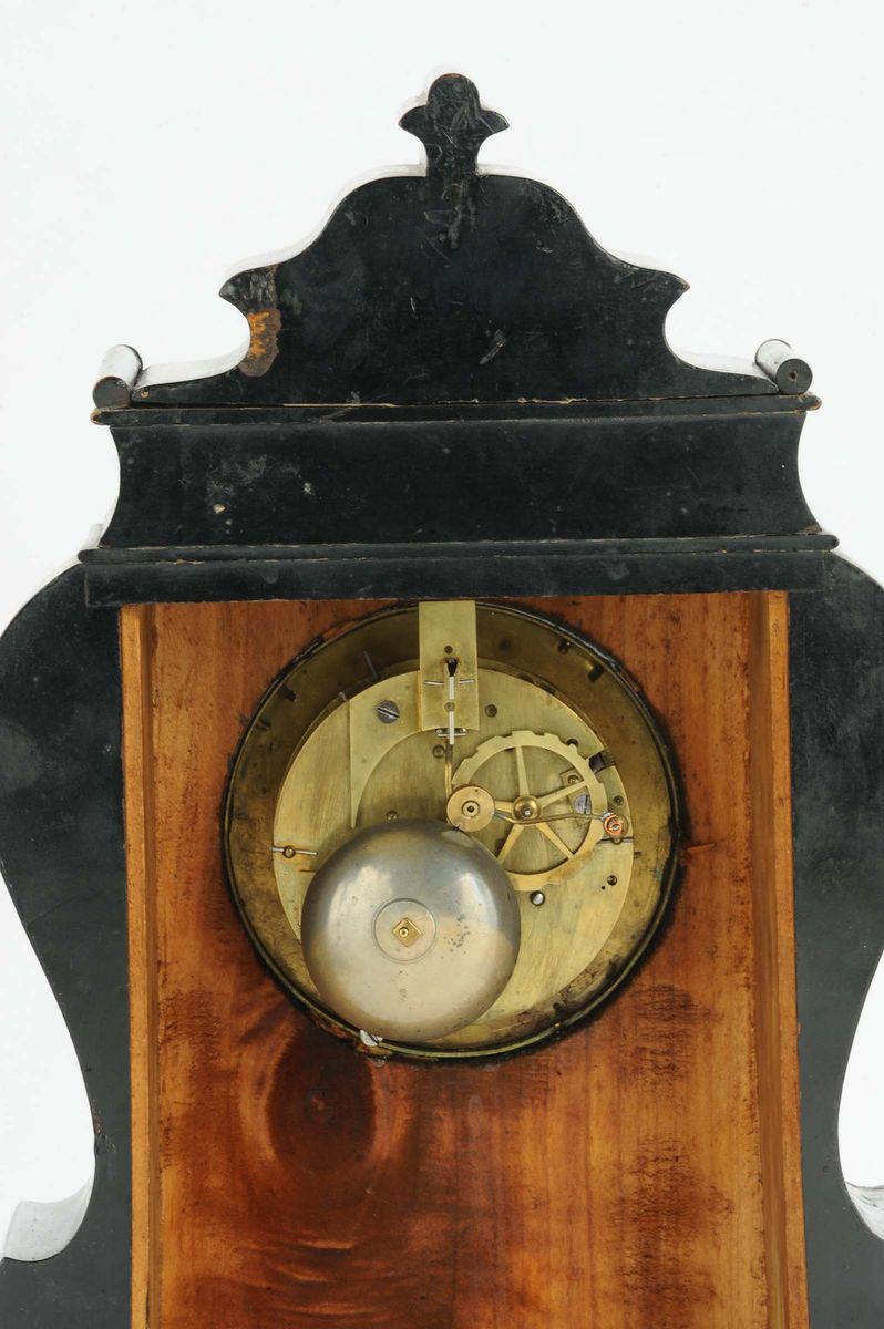 Pendola da tavolo con cassa in legno ebanizzato, Paquet & Fils, Francia metà XIX secolo