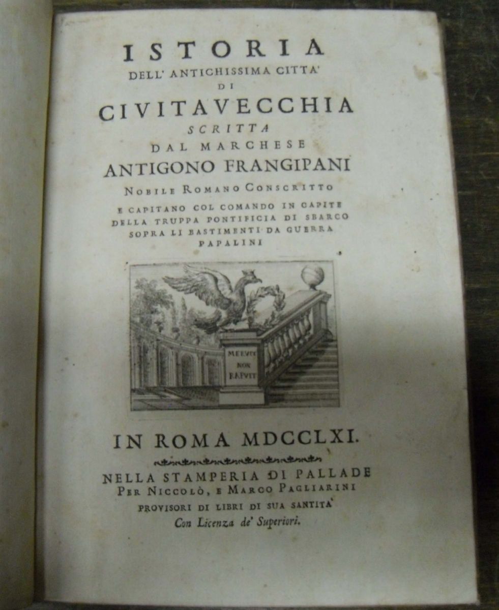 Edizioni del '700 - storia locale - Civitavecchia FRANGIPANI Antigono