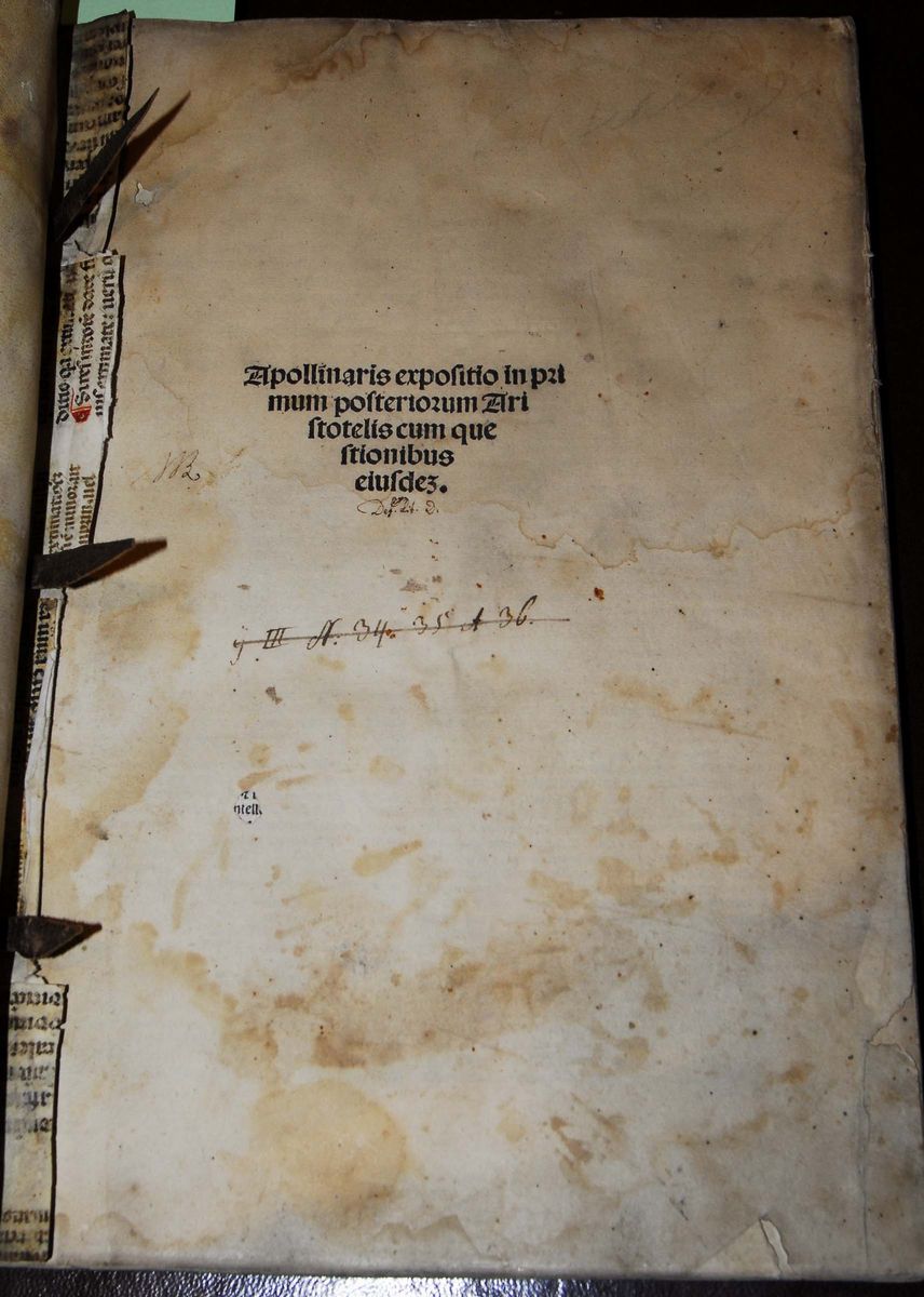Apollinaris expositio in primum posteriorum Aristotelis, Venezia, per Otinum Papensiem, 1497.