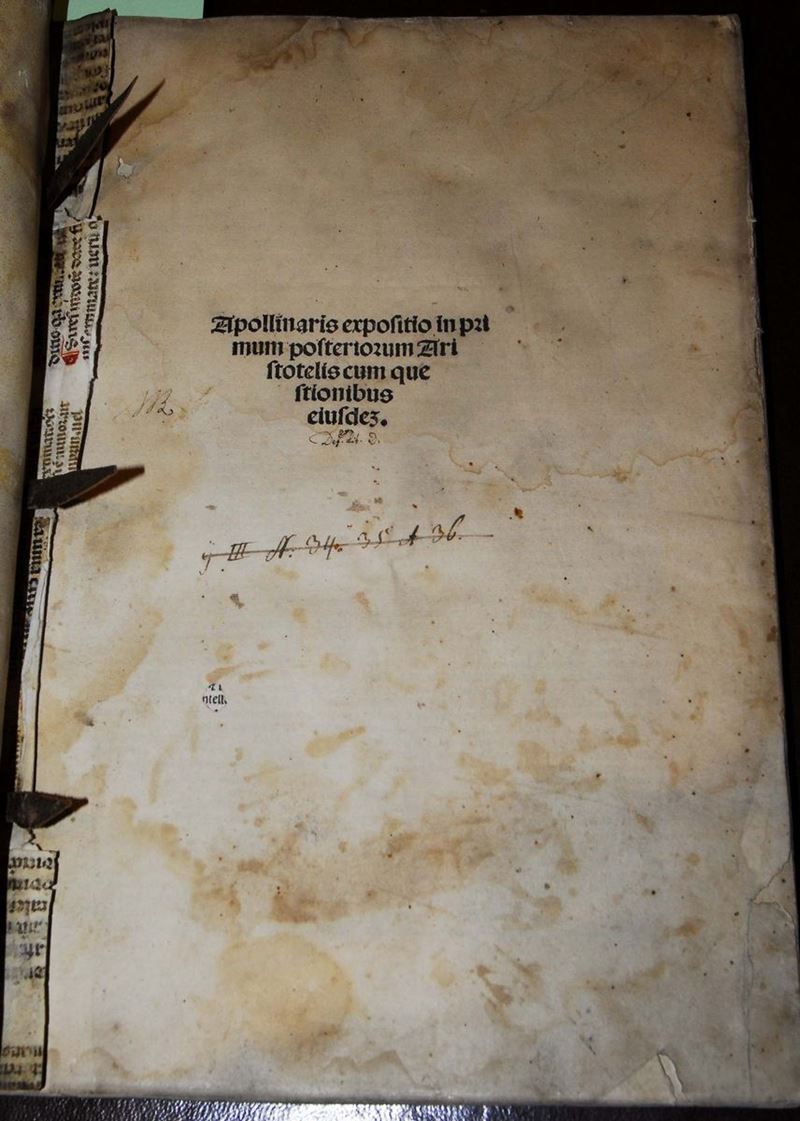 Edizioni incunabole APOLLINARIS Cremonensis Apollinaris expositio in primum posteriorum Aristotelis, Venezia, per Otinum [..]