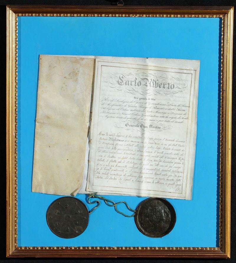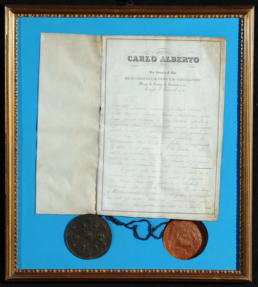 due delle quali emanate da Carlo Alberto Re di Sardegna. Le bolle sono conservate sotto vetro, in cornice