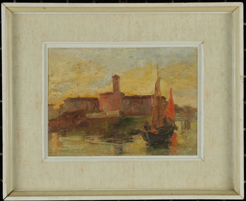 Anonimo del XX secolo Veduta di città portuale