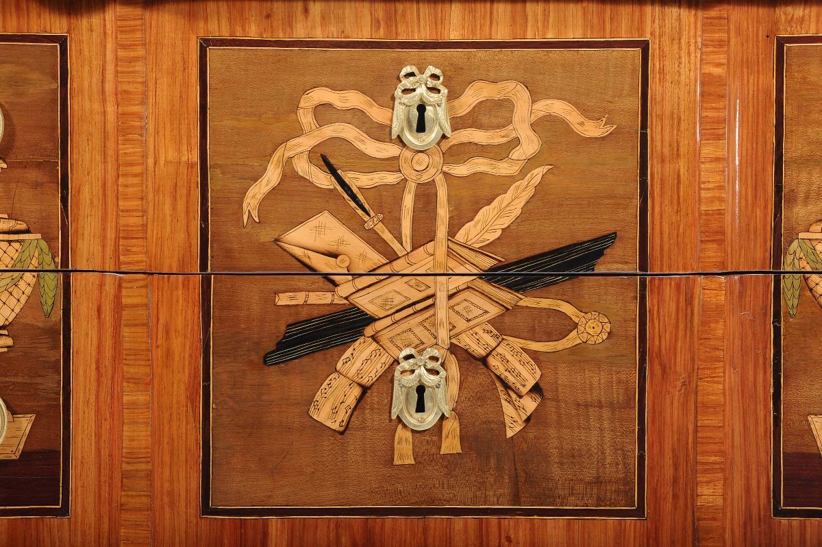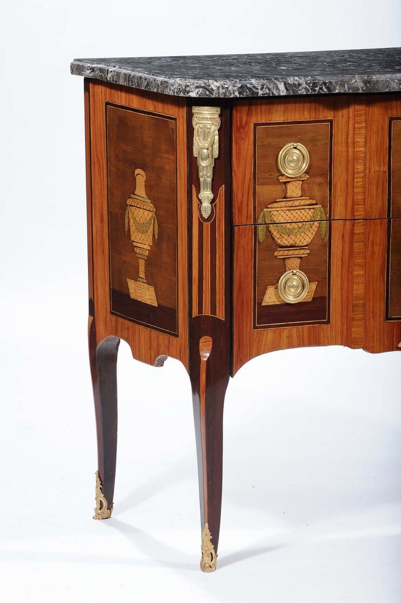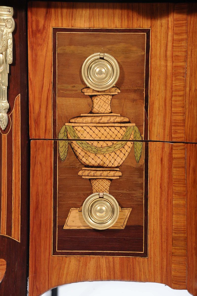Comò Transizione lastronato in bois de rose e altre essenze, fine XVIII secolo