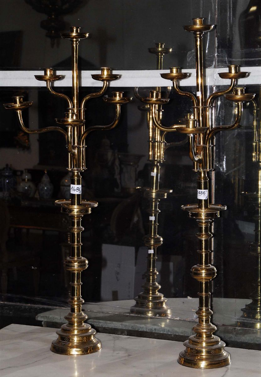 Coppia candelabri in metallo dorato a sei luci, Russia XIX secolo