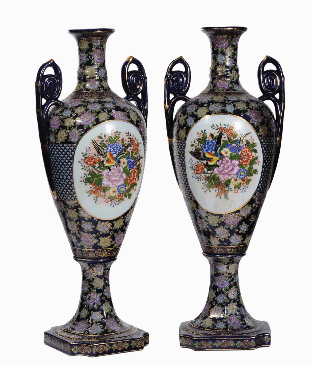 Coppia di grandi vasi in porcellana bianca e blu, XIX secolo