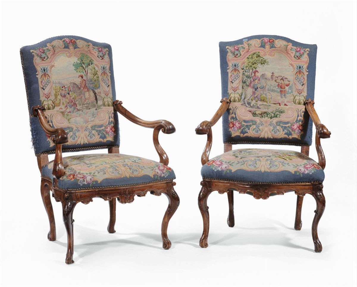 Coppia di poltrone in noce intagliato, Venezia XVIII secolo