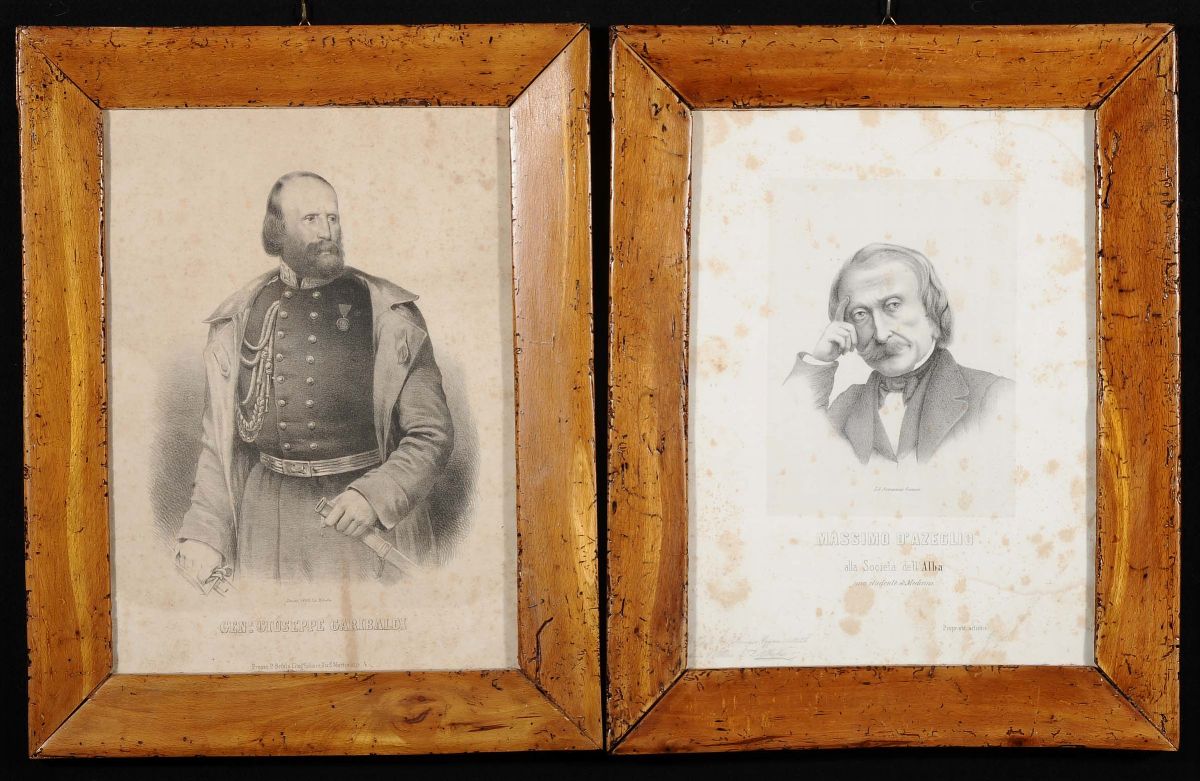 Due stampe raffiguranti Garibaldi e D’Azeglio