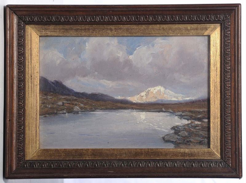 Ettore Garavaglia Paesaggio montgna con lago Paesaggio con fiume