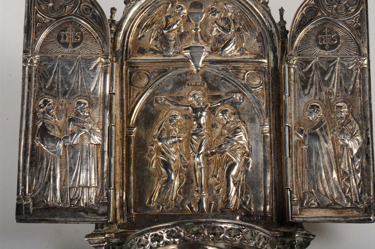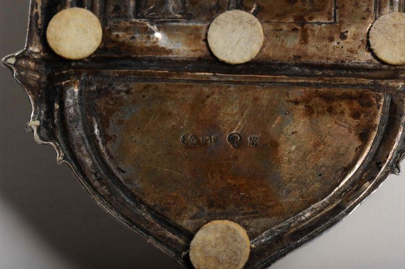 Piccola acquasantiera in argento sbalzato, XIX secolo