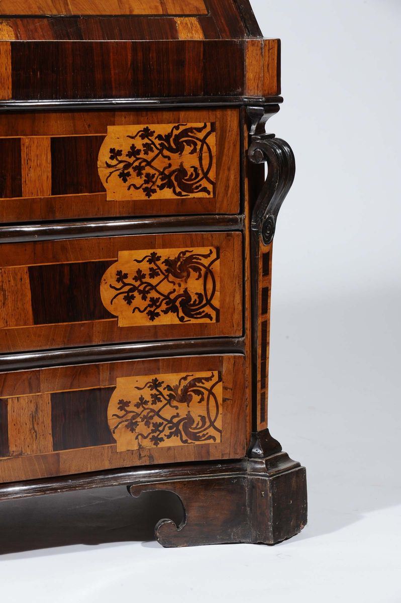 Ribalta lastronata in noce e legno di carrubo, Roma XVIII secolo