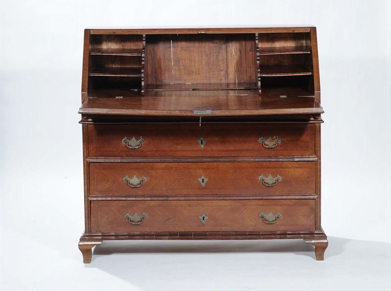 tre cassetti alla base, calatoia che cela vani a giorno e segreto, cm 112x53x107